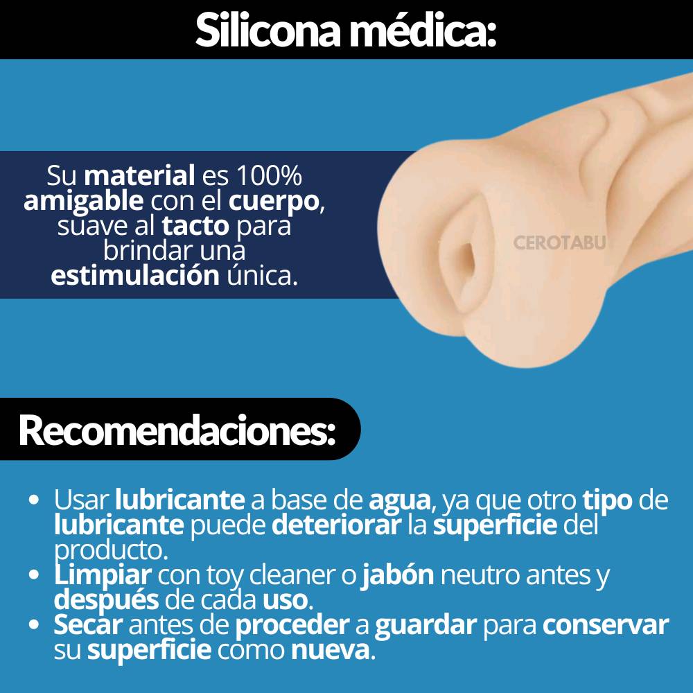 - Limpiar con toy cleaner o jabón neutro antes y después de cada uso.