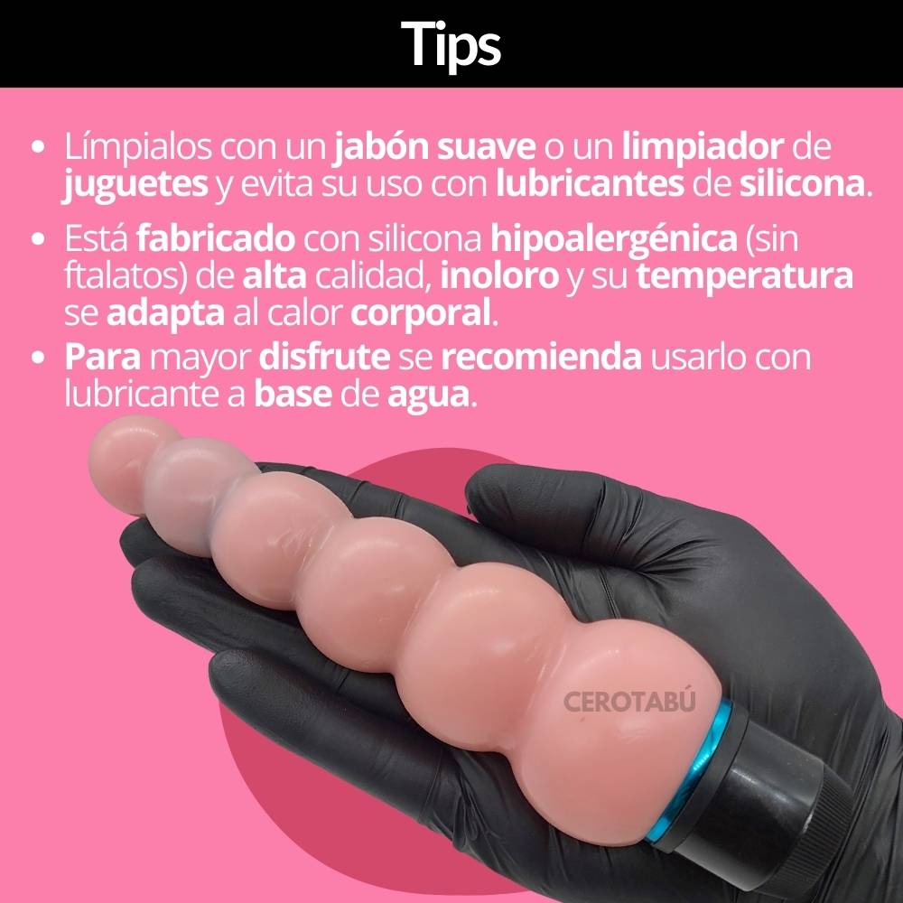 - Limpiar con toy cleaner o jabón neutro antes y después de cada uso.